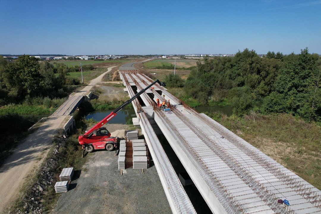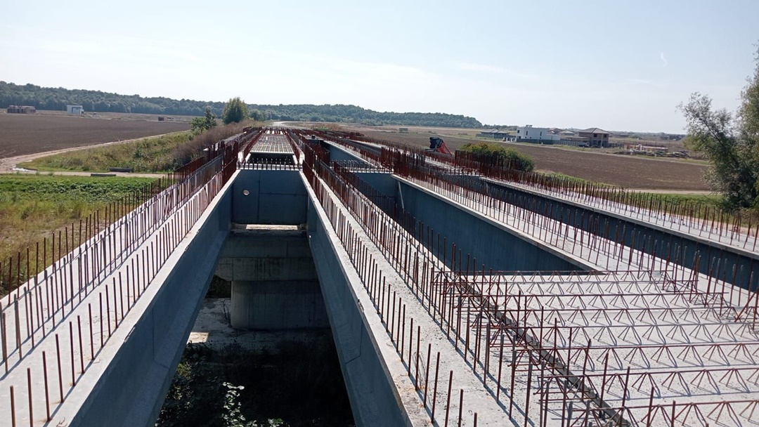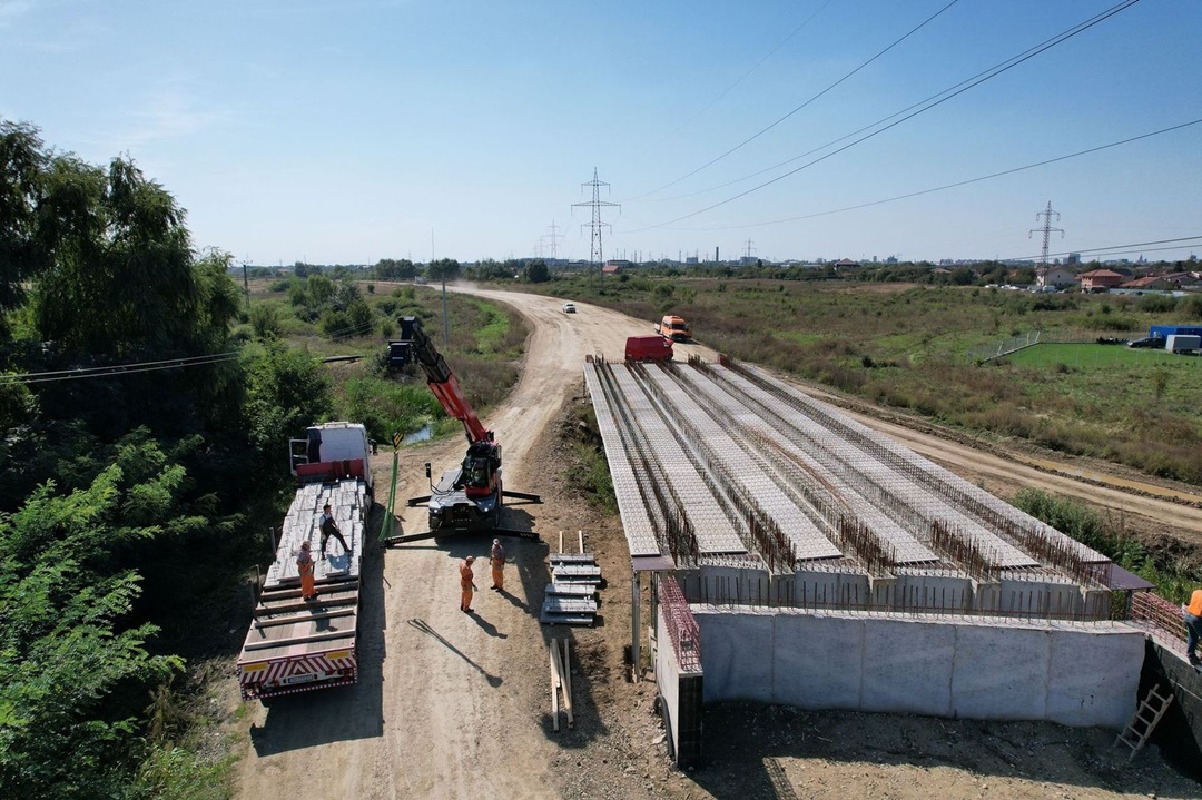 S-au montat grinzi la pasajul peste calea ferata din zona localitatii Chisoda, iar acum muncitorii s-au mobilizat si la cel de la Urseni, la un canal de irigatii, dar si la podul peste Bega de la Ghiroda.