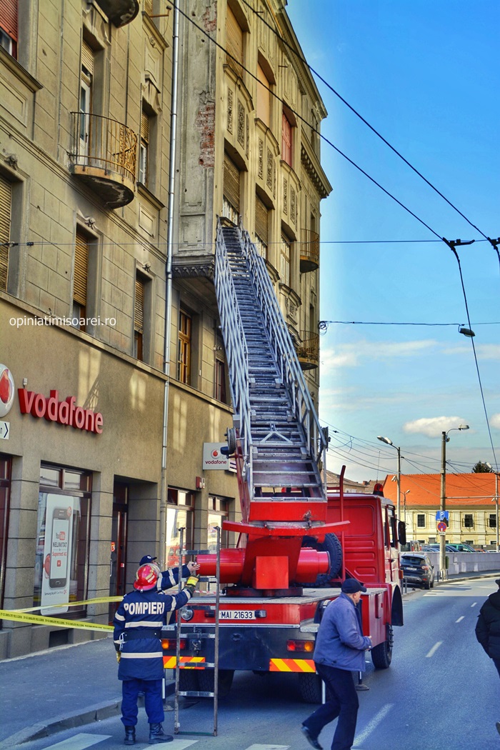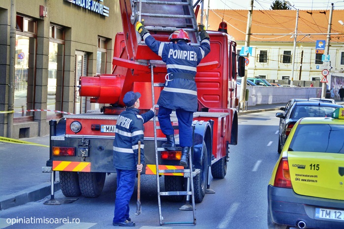 Politia locala a asigurat zona din vecinatatea Pietei Operei, iar pompierii au urcat pe scara unei autospeciale si au intervenit.