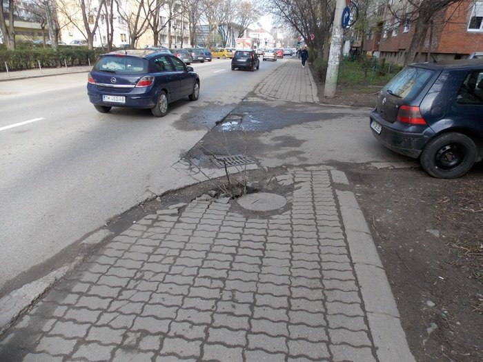 Mai multe dale s-au desprins in imediata vecinatate a unui capac de canal si riscul e mare sa nimeresti exact acolo.