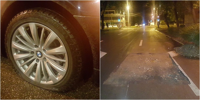 „Era asfaltul decupat, lasat asa, am intrat direct in groapa si mi-am avariat autoturismul, doua roti s-au spart. Voi merge la firma de constructii sa cer despagubiri. Daca nu-mi dau, ii dau in judecata„, a spus furios pentru opiniatimisoarei.ro soferul ghinionist.