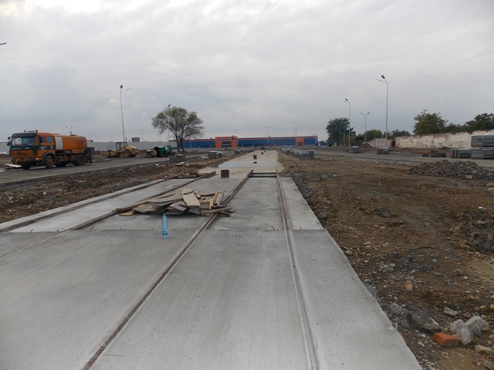 Muncitorii au reusit sa monteze linia ferata care va traversa efectiv Calea Sagului si care va duce pana la noul Shopping City, pe partea stanga a arterei, pe sensul de iesire din pras, iar acum lucrarile continua pe partea dreapta, astfel ca circulatia a fost din nou deviata.