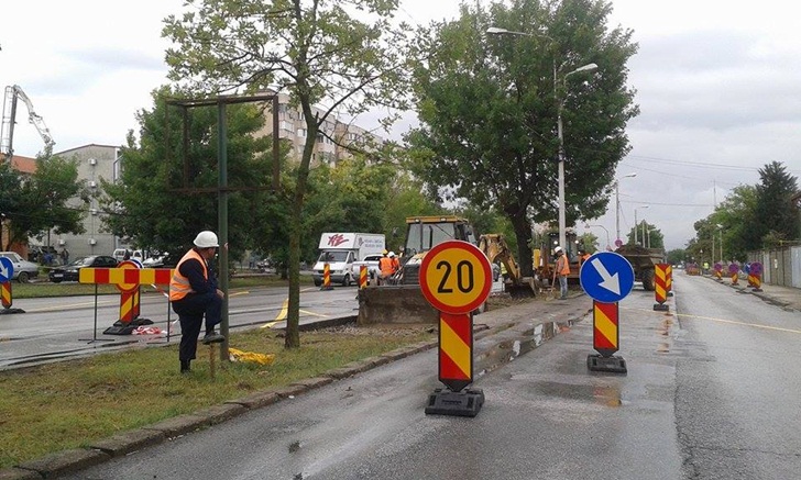 TIMISOARA. Pregatiri intense pe Calea Sagului! Dupa taierea copacilor care stateau in calea lucrarilor ce vor fi deschise pentru extinderea liniei de tramvai catre noul mall, acum se munceste de zor la reconfigurarea circulatiei pentru santier. Aceasta, desi, investitorii n-au primit inca unda verde de la Primaria Timisoara sa se apuce de treaba.