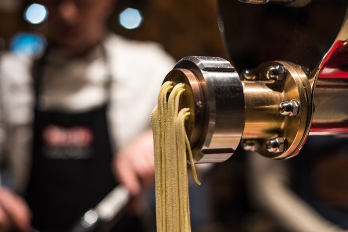 “Aici inventam, cream, producem. Aici Fabrikam ca intr-o uzina. Tot procesul este intern. Vrem sa desfiintam ideea de paste la cutie. Vrem ca omul sa vada cum sunt preparate in masina de facut paste fainoase. Vrem ca painea pe care o mananca sa fie a locului, proaspat scoasa din cuptor, mirosind a paine. Pentru ca mancarea este o emotie. Trebuie gatita si servita corect”, declara Ciprian Tataru si Tudor Marcu, Chefi-bucatarii restaurantului.