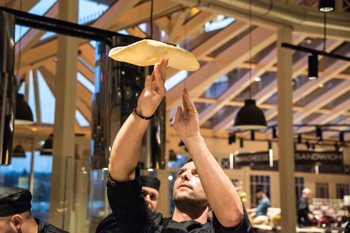 Ideea din spatele atFabrika este simpla: un atelier de gatit in care accentul se pune pe transparenta si totodata pe prospetimea alimentelor alese din Fresh Market-ul din interiorul localului.