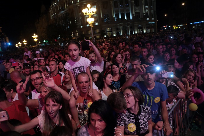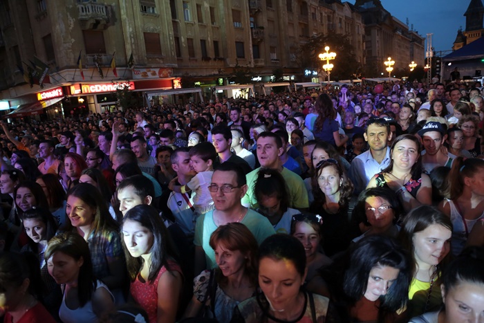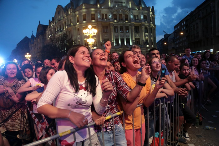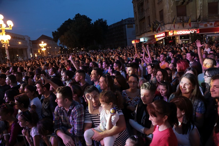 TIMISOARA. Piata Operei din Timisoara a fost plina-ochi la concertele organizate, sambata seara, de Ziua Timisoarei. Timisorenii au venit in numar mare sa ii vada pe baietii de la 3rei Sud Est, pe Antonia si pe cei de la Deepcentral, dar si pe Alina Eremia.