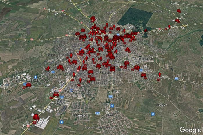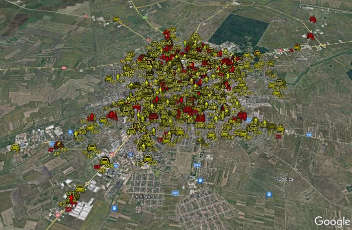 “Harțile pe care le vedeți in imaginile alaturate reprezinta accidentele ce au avut loc in Timișoara intre 2017 – 2019. Icoanele galbene sunt accidentele cu victime iar cele rosii reprezinta accidente cu raniti grav sau decese. Nu exista zona sau cartier sigur.