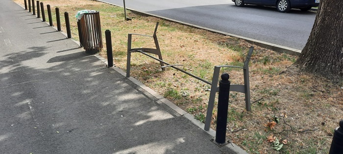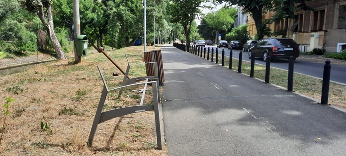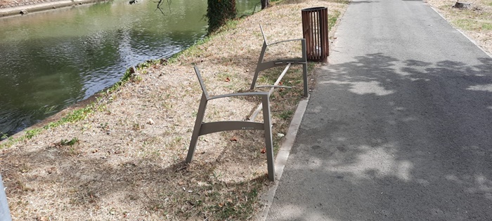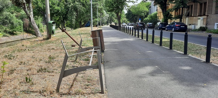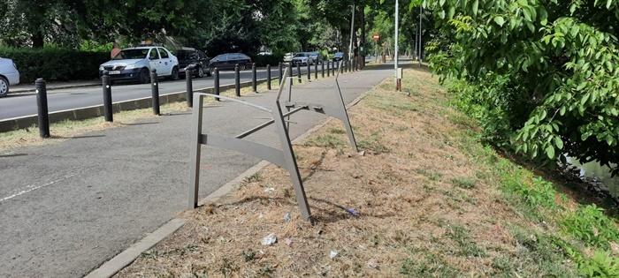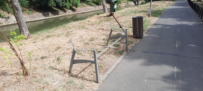 Doar scheletul metalic a ramas din 15 banci aflate pe malul Begai intre Podul Decebal si Piata Badea Cartan, in cateva ore, astfel ca miercuri dimineata cei care locuiesc sau trec des prin zona s-au ingrijorat si au semnalat opiniatimisoarei.ro.