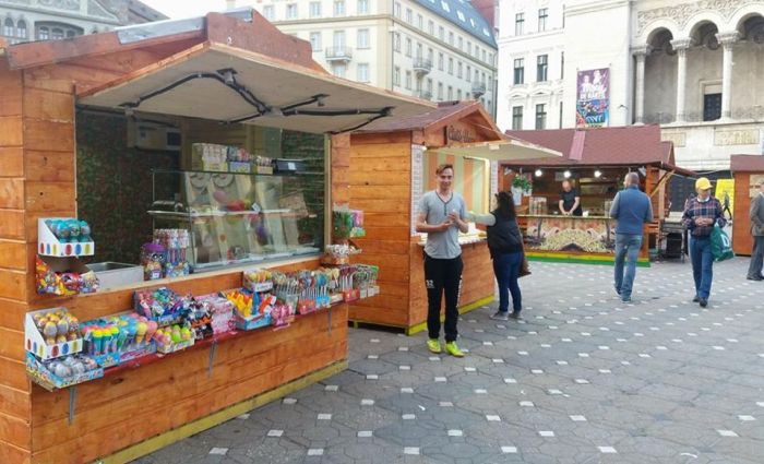 Anul acesta, casutele din care se vor vinde tot felul de bunatati si cadouri specifice sarbatorilor pascale sunt amplasate pe platoul din fata Operei.