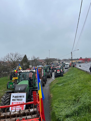 “Acest protest se desfasoara in asemntiment cu colegii nostri din Agricultura, cu fermierii din Romania, pentru a arata ca suntem uniti. Pana astazi nu s-a manifestat nicio miscare de genul asta. Este un protest pasnic, nu deranjam circulatia. Tinand cont de ce s-a intamplat in ultimii ani, cu niste fluctuatii teribile de preturi, ma refer la produsele pe care le-am achizitionat in vederea realizarii productiei de anul acesta, fitosanitare si ingrasaminte. Din cauza afluxului de marfa care a intrat din Ucraina, o marfa care nu se compara, ca si calitate, cu ce producem noi, in special in privinta valorilor reziduale pe care le au la nivelul boabelor, ma refer la grau, porumb, care contin foarte multe substante pe care noi suntem conditionati de Uniunea Europeana sa nu le mai folosim, chiar modificate genetic. Toate au dus la pierderi teribile pentru fermierii romani.
