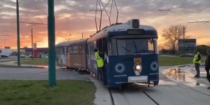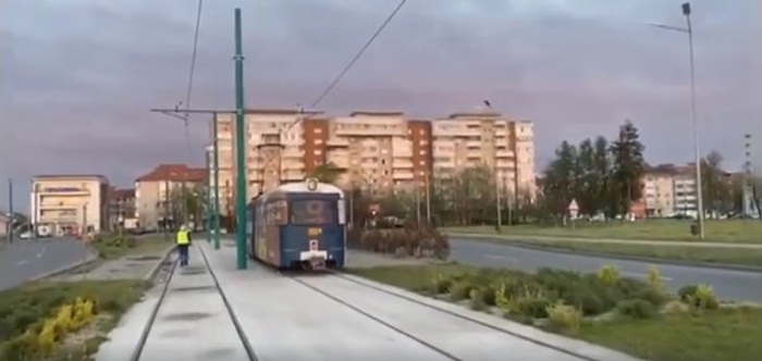 TIMISOARA. La patru ani de la startul proiectului liniei de tramvai care duce catre Shopping City Timisoara si la aproape 3 luni de la mutarea statiei de aer de pe Calea Sagului, STPT a inceput probele cu o garnitura pe sinele finalizate.
