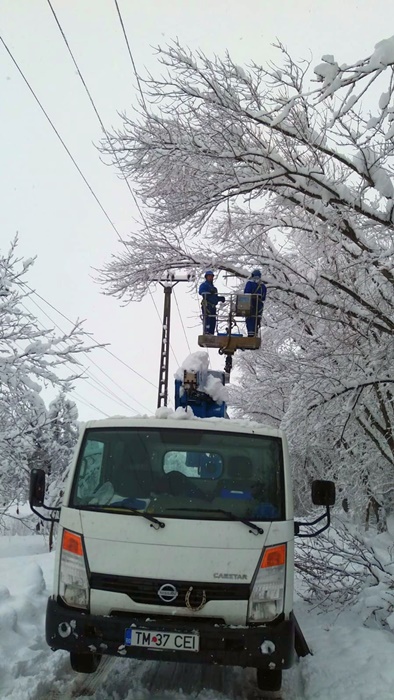 TIMISOARA. Au lucrat in conditii grele, de iarna, au ajuns la stalpi cu utilaje trase de excavator, dar au reusit sa mentina alimentarea cu energie electrica atat la statiile care asigura apa in Timisoara, dar si la unele localitati din vecinatate.