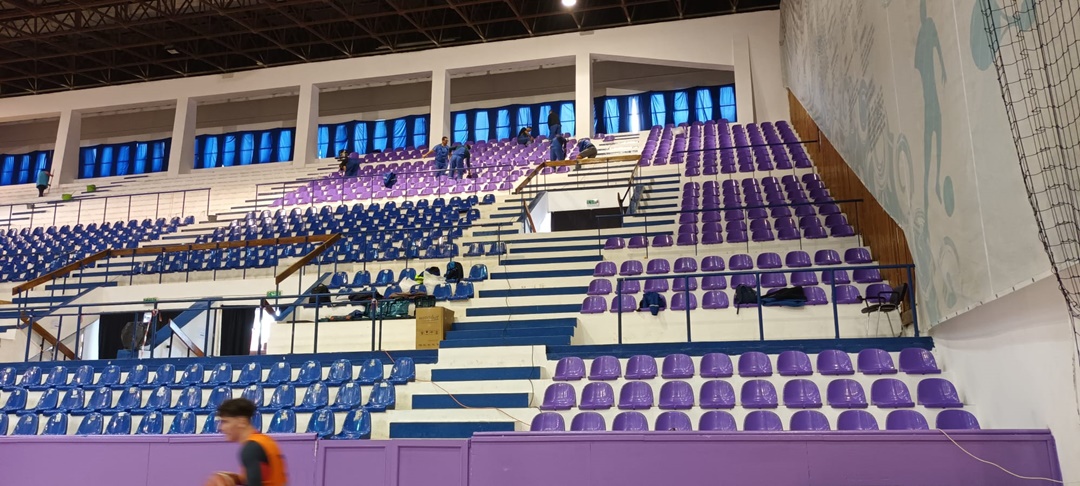 Vechile scaune albastre au fost scoase din gradene si indepartate din sala. Locul acestora a fost luat de cele violet, puse in partea superioara a salii si in zonele laterale, dar si de cele albe, puse deasupra intrarilor in tribune si in apropierea mantinelei.