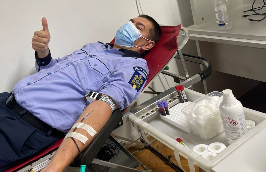 O alta campanie a fost organizata la sediul IPJ Timis, unde 40 de agenti au donat. Politistii ii indeamna si pe timisoreni sa le urmeze exemplul si sa mearga la Centrul de Transfuzie pentru a-i ajuta astfel pe cei aflati in suferinta in spitale.
