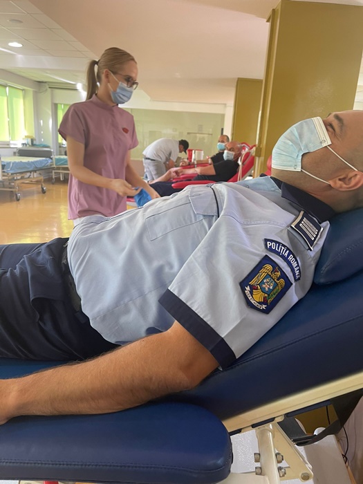 Oamenii legii spera ca timisorenii sa le urmeze exemplul si sa mearga sa doneze sange pentru a-i ajuta pe cei care sufera in spitalele din Timisoara si din judet.