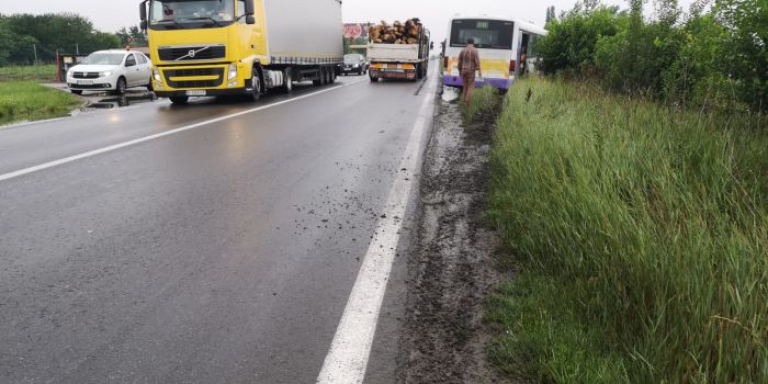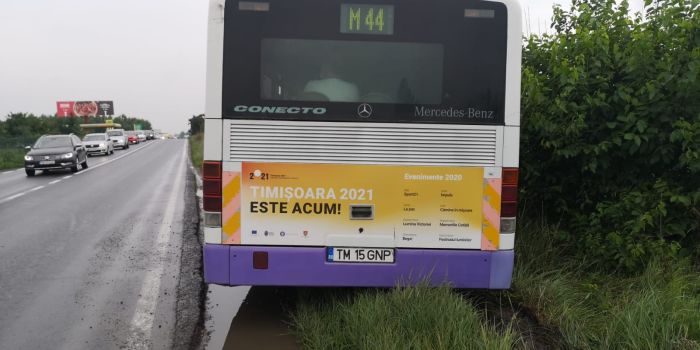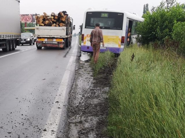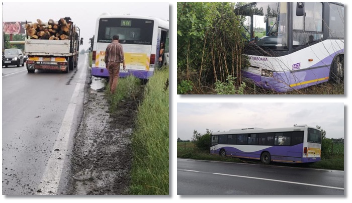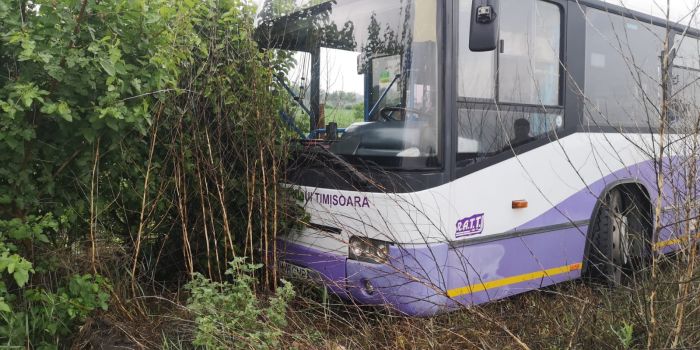 TIMISOARA. Incident, miercuri dupa amiaza, pe drumul care leaga Timisoara de Becicherecul Mic. Un autobuz al Societatii de Transport Public Timisoara a ajuns in boschetii de pe marginea drumului, dupa ce un sofer care circula din sens opus i-ar fi taiat calea.