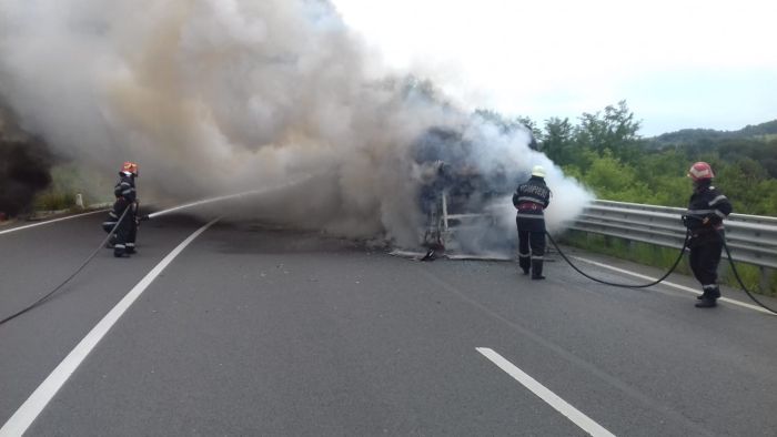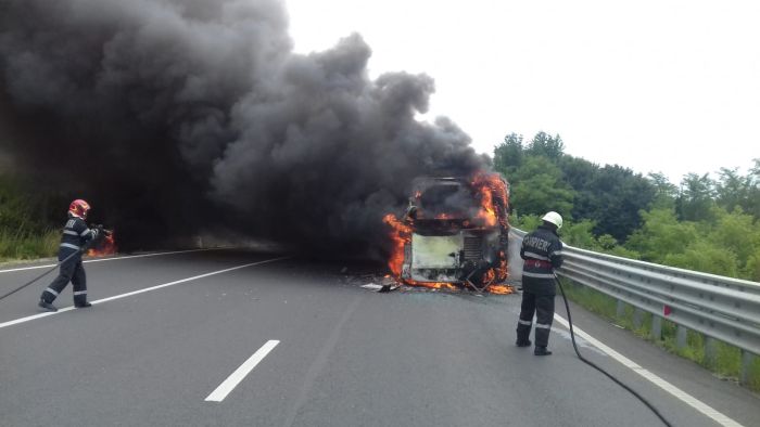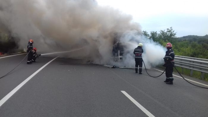 A fost panica, pe o sosea din vestul tarii, dupa ce un autobuz a fost cuprins de flacari. Totul s-a petrecut pe soseaua care leaga localitatile Brad si Deva din judetul Hunedoara.
