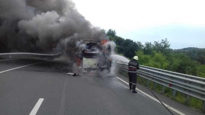 Din primele informatii, se pare ca incendiul ar fi pornit de la blocul motor al mijlocului de ttransport. Urmeaza ca pompierii sa stabileasca, insa, cu exactitate, cauza incendiului.