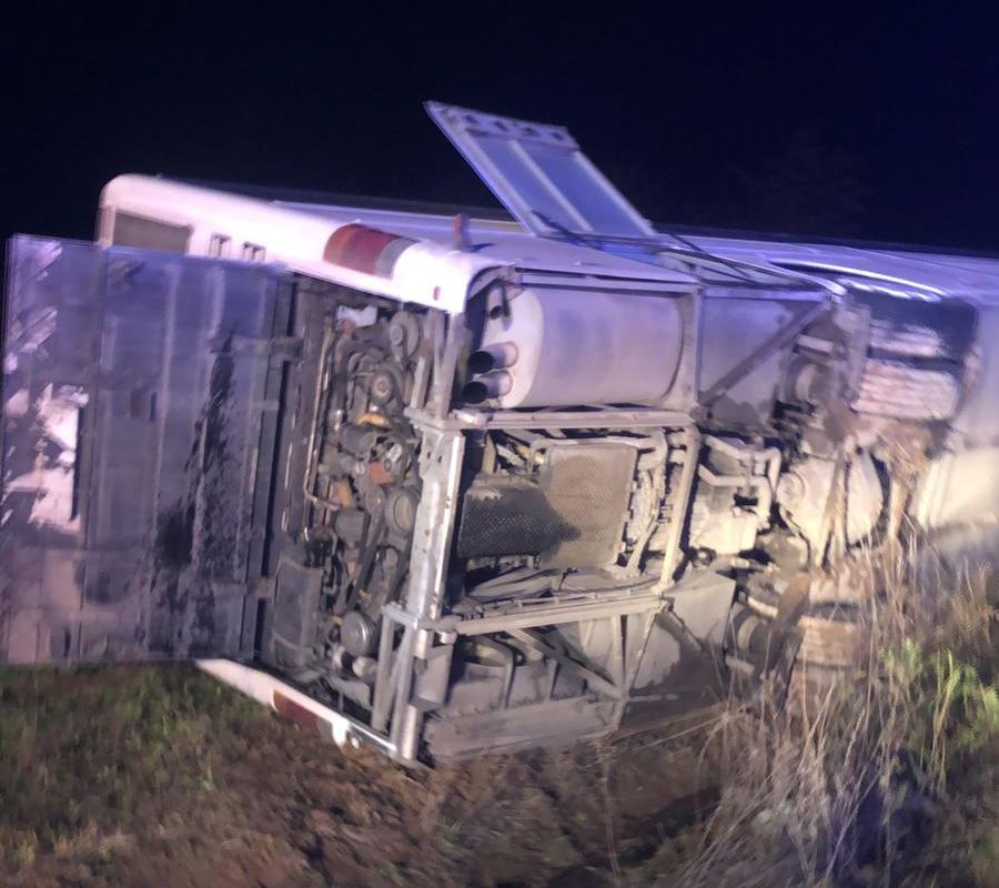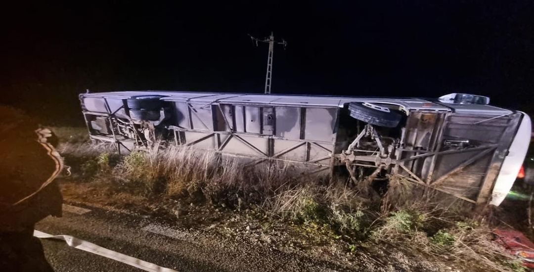 “Din primele informatii, este vorba de un autocar cu 33 de persoane (1 sofer+32 de pasageri), care s-ar fi rasturnat intr-un sant. Au fost ranite usor, din primele estimări, 5 persoane.