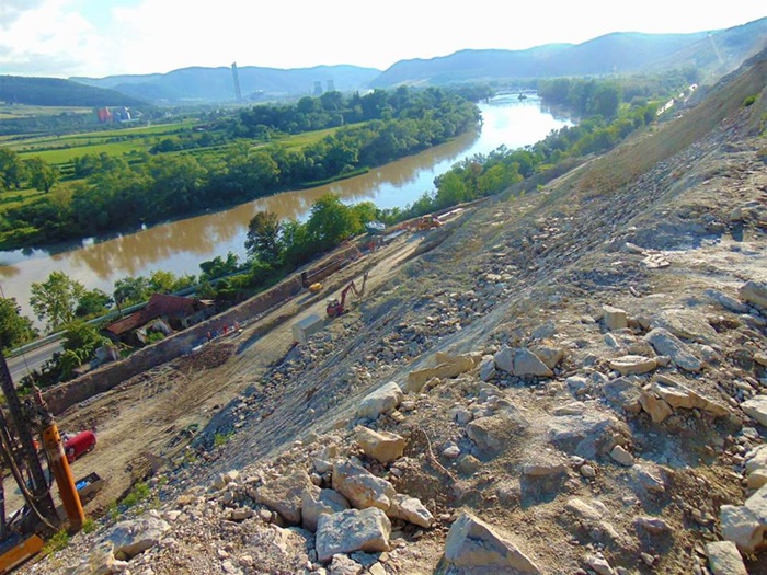 “In zona “dealului liliecilor” de la Soimus operatiunile de instalare a grinzilor pe viaductul vestic se apropie de final. Sunt progrese si la protectia taluzului: tehnologia aleasa este “invelirea” versantului in plase metalice fixate cu ancore forate la 8 metri adancime. De asemenea, devin vizibile zidurile de sprijin si fundatiile solutiei de consolidare cu pamant armat“, explica echipa de la Asociatia Pro Infrastructura.