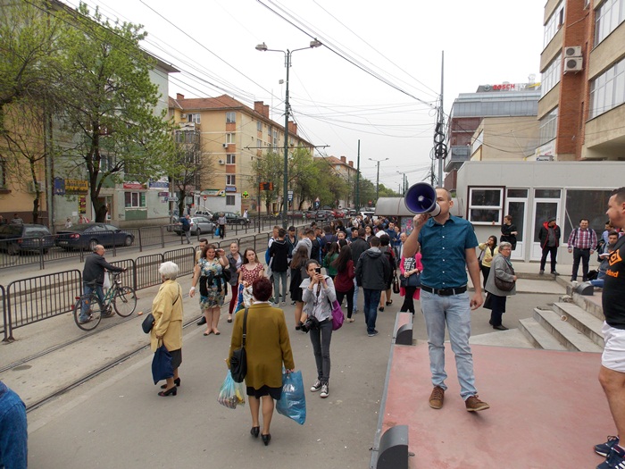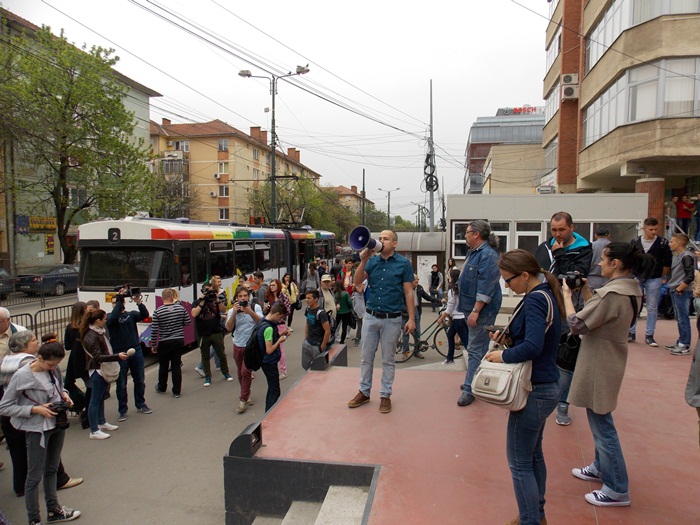 Cristian Brancovan, fost lider al galeriei Poli Timisoara, a fost cel care a initiat protestul pe Facebook. Inarmat cu o portavoce, le-a strigat celor ce urcau in tramvaie sa fie cu bagare de seama.