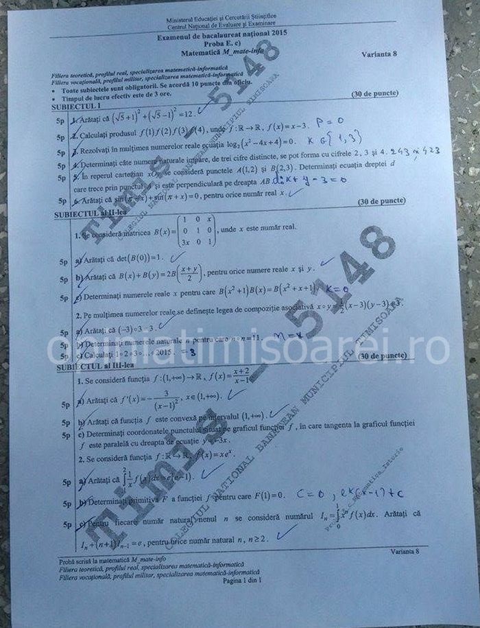 Examenul a fost structurat in trei subiecte, iar primii elevi care au iesit din sali spun ca s-au descurcat.