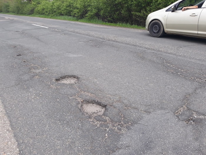 Pe soseaua degradata circula in voie si tractoare si alte utilaje agricole mari si grele, unele cu senile, pentru ca nu verifica nimeni traficul si nici nu exista vreun cantar pe acest drum.