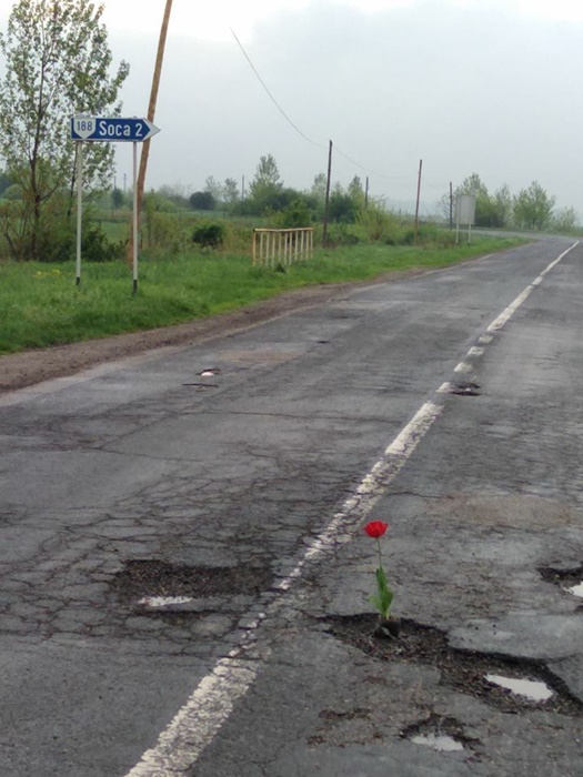 Ajunsi la disperare, localnicii au plantat chiar flori in gropi in urma cu un an, in speranta ca vor reusi sa traga un semnal de alarma in ‘imparatia’ de la Timisoara, dar in zadar.