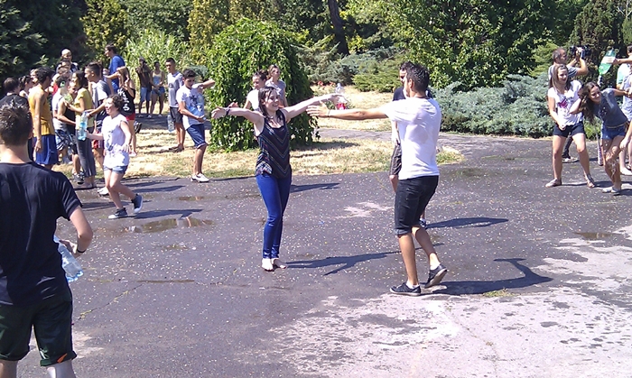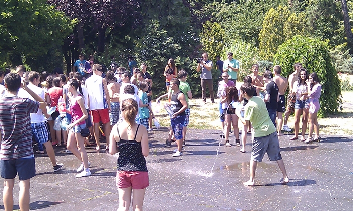 Lucrurile nu au stat chiar asa, dar cei o suta de tineri prezenti in Parcul Botanic nu au pierdut ocazia sa se lase udati pana la piele si nici sa le faca o baie prietenilor, dar si altor persoane, pe care atunci le-au cunoscut. Distractia a fost la cote inalte, liceenii s-au stropit cu apa din sticle sau s-au udat cu apa aruncata direct cu galeata.