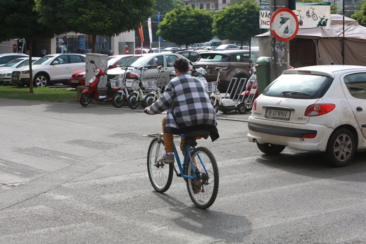 Nu e vorba doar de biciclisti insa! Interdictia se refera la orice vehicul, exceptandu-i pe cei care se dau cu rolele, care, conform legii, sunt considerati pietoni.