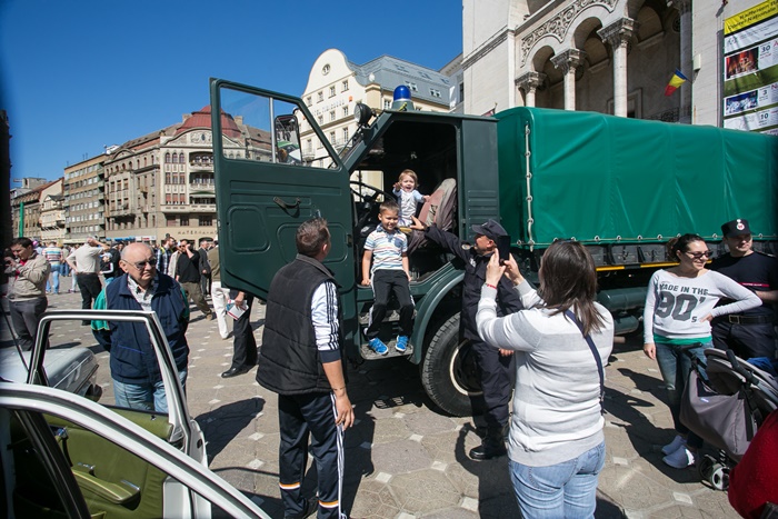 Pe platoul din fata Operei au fost admirate masini, motociclete, dar si camioane, cea mai veche dintre ele datand din 1938.