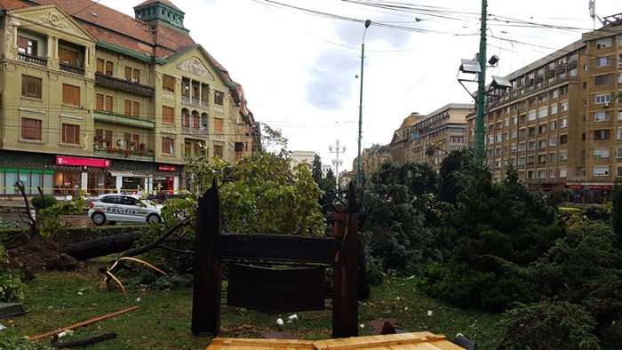 TIMISOARA. Oameni morti si raniti, acoperisuri smulse, copaci prabusiti. O furtuna violenta s-a abatut asupra Timisoarei duminica dupa-amiaza si a lasat in urma dezastru.