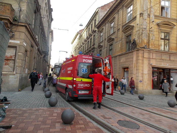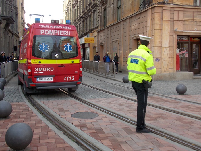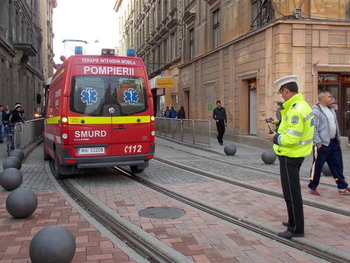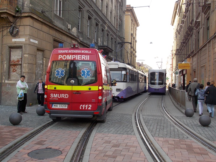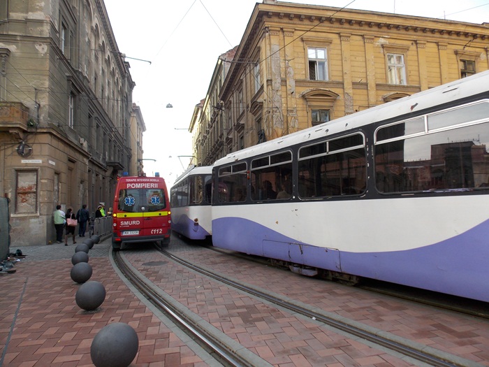 Astfel, pana cand paramedicii au intervenit, ambulanta SMURD a stationat pe sine, astfel ca circulatia tramvaielor a fost blocata intre Piata Sfantul Gheorghe si Piata Libertatii, pe sensul dinspre 700.