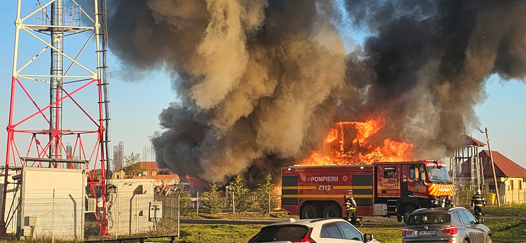 TIMIȘOARA. Flăcări înalte și coloană de fum vizibilă de la kilometri depărtare marți dimineață.