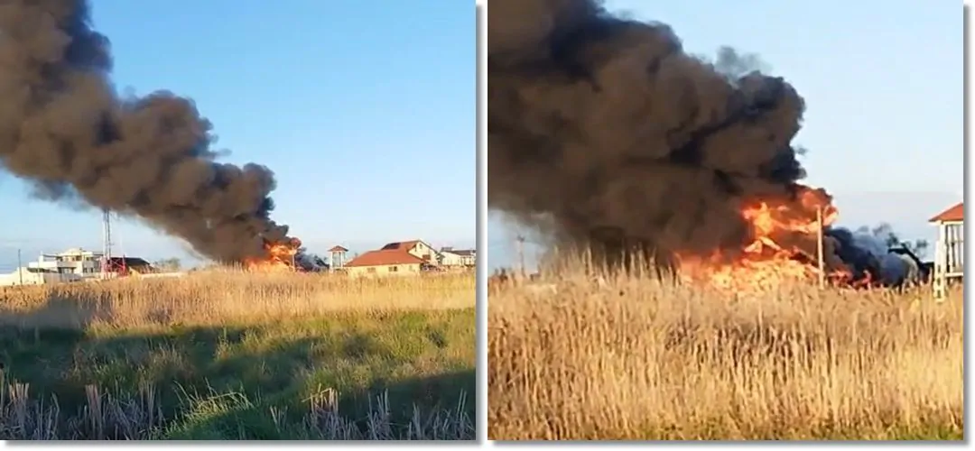 Incendiul se manifestă cu ardere generalizată, pe o suprafață de aproximativ 300 mp.