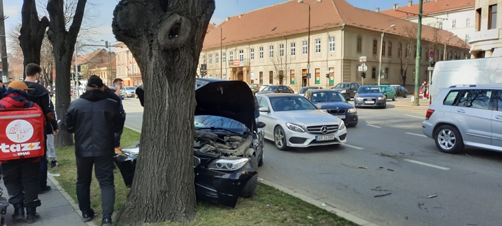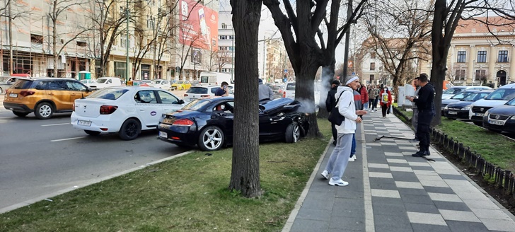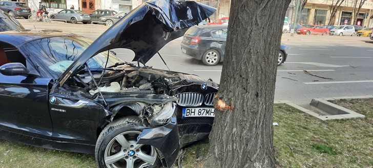 TIMISOARA. BMW infipt intr-un copac aflat in plin centru, la Timisoara, vineri dupa-amiaza. Accidentul s-a petrecut in dreptul hotelului Continental.