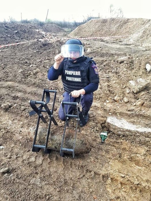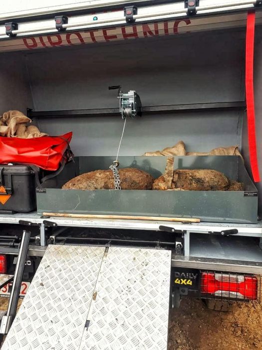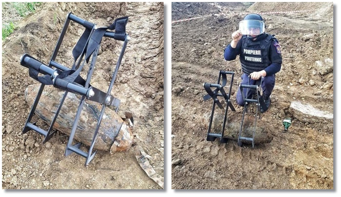 TIMISOARA. Interventie dificila, duminica, pentru pompierii din Timis. Acestia au fost chemati sa ridice doua bombe de aviatie, fiecare de cate 50 de kilograme, de pe santierul Centurii Sud Timisoara, in Mosnita Noua.