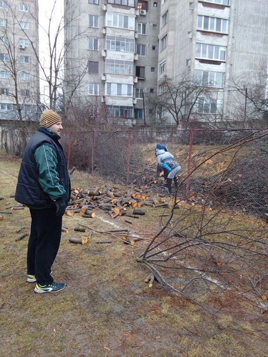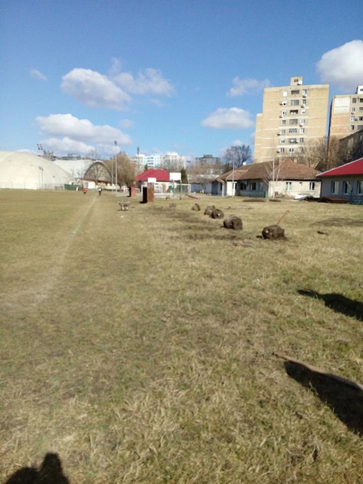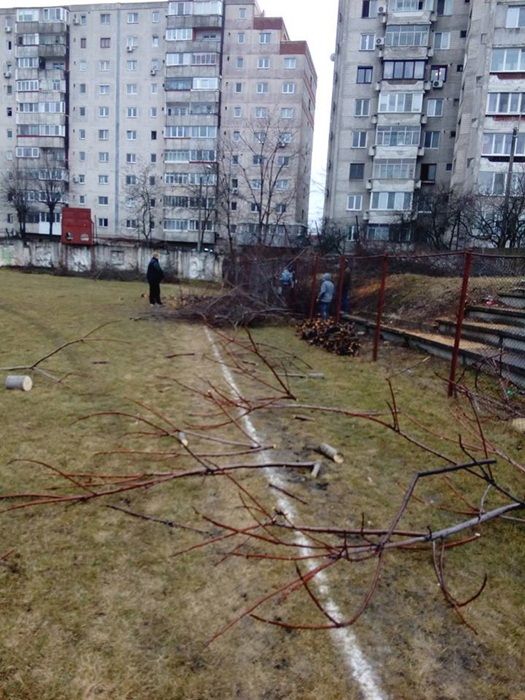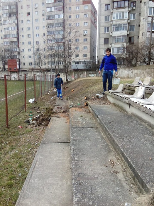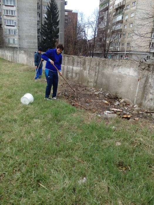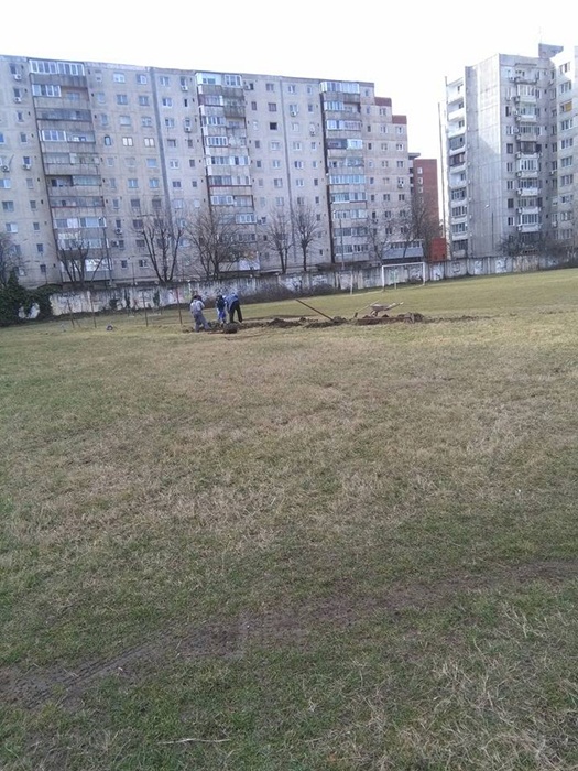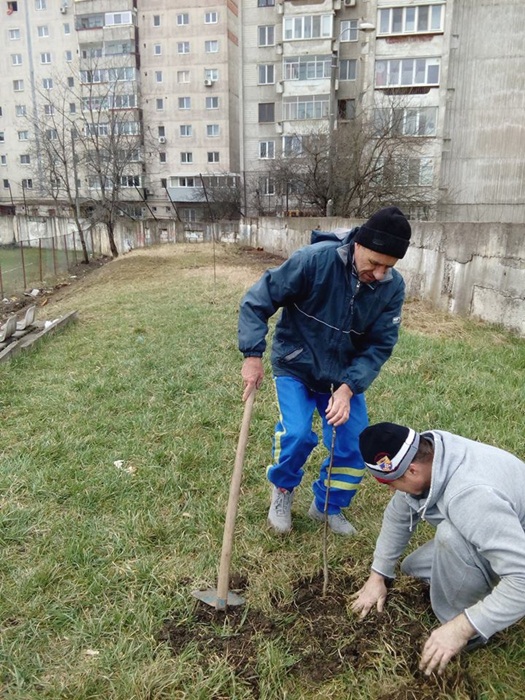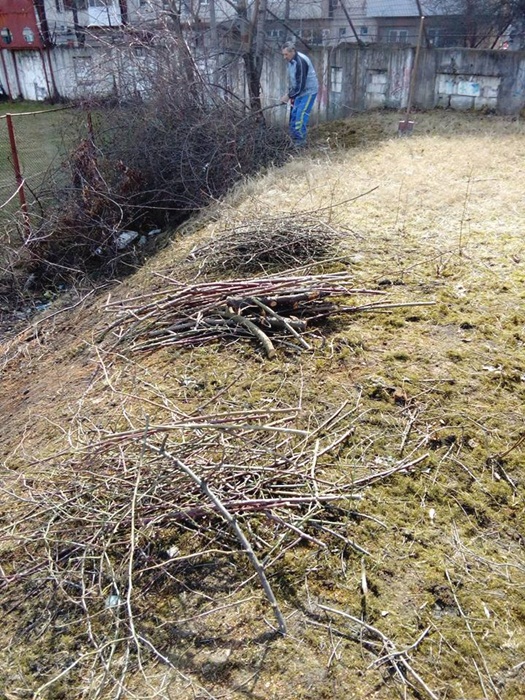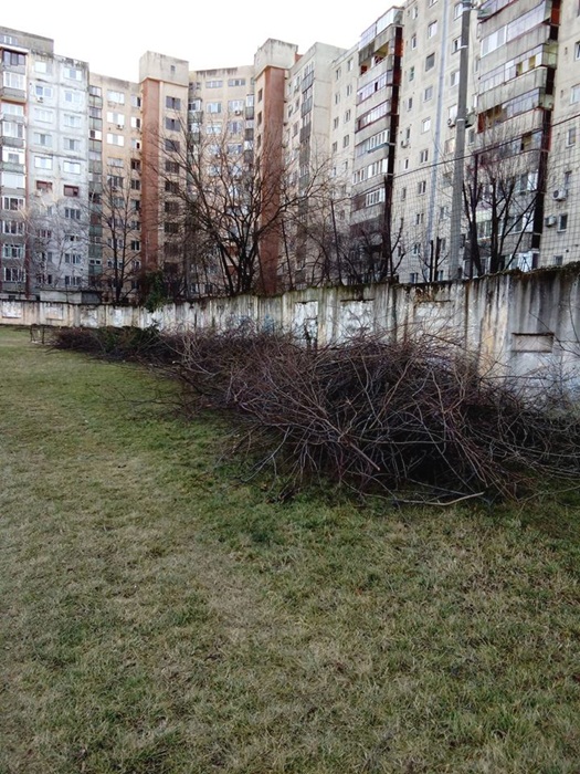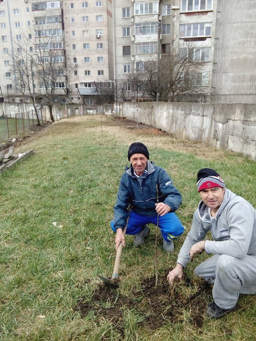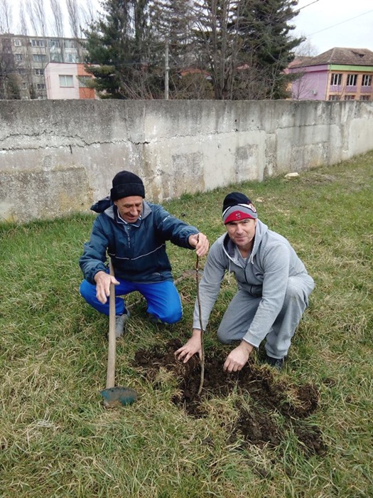 Oamenii au taiat copacii batrani si putrezi si au indepartat tot vegetatia uscata. Au mai fost lasati in picioare doar doi ciresi, iar profesorii au plantat sase nuci, in zona tribunei miniaturale dinspre strada Teiului.