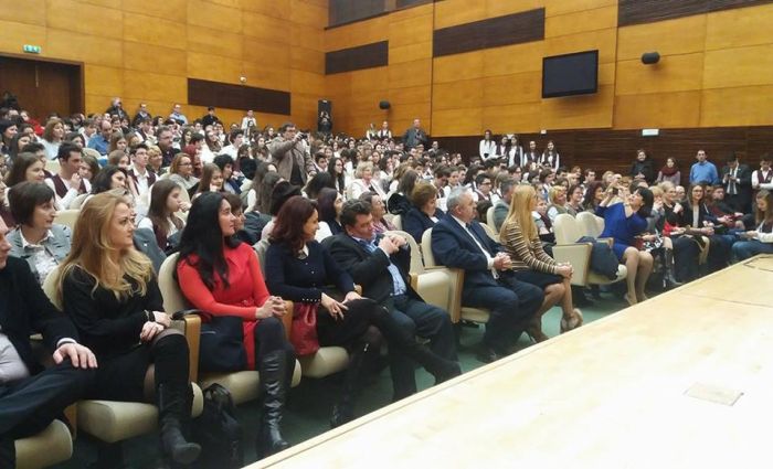 “Pentru noi, acest eveniment inseamna traditie, o traditie de peste doua secole, in care, indiferent de numele pe care aceasta scoala l-a avut. Aceasta scoala a transmis, in timp, ideea de excelenta si de performanta. Performanta nu doar olimpica, ci si in domenii de implicare sociala si in activitati care genereaza plus valoare in societate. In anul 2017, din cei 2400 de elevi ai colegiului Banatean, 620 au premii la concursuri, olimpiade si alte concursuri extrascolare. Dintre ei, noi am selectat 50 de elevi, reprezentativi pe domenii – la disciplinele umane, la real si din activitatile extrascolare. Acordam si un titlu de profesorul anului unei doamne profesoare care a marcat zeci de generatii”, a spus Sorin Ionescu, directorul Colegiului National Banatean.