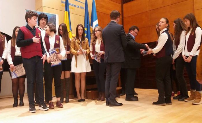 “Am ajuns, cu multa perseverenta, intr-un concurs international, am ajunsin finala concursului si am reusit sa excelam in anumite lucruri pe care nu toti am putea sa le facem. Eu zic ca putea primi aceasta distinctie de elevii anului, pentru ca trebuie sa ii incurajam si pe altii sa gaseasca astfel de concursuri, care le pun in evidenta anumite aspecte pe care altfel nu le-ar putea descoperi”, Diana Maglas, una dintre elevele premiate.