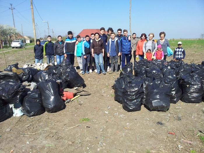 Au venit elevi, tineri, dascali, angajati de la primarie care, inarmati cu saci, au adunat gunoaiele si au umplut aproape 200 de saci intr-o singura dimineata.