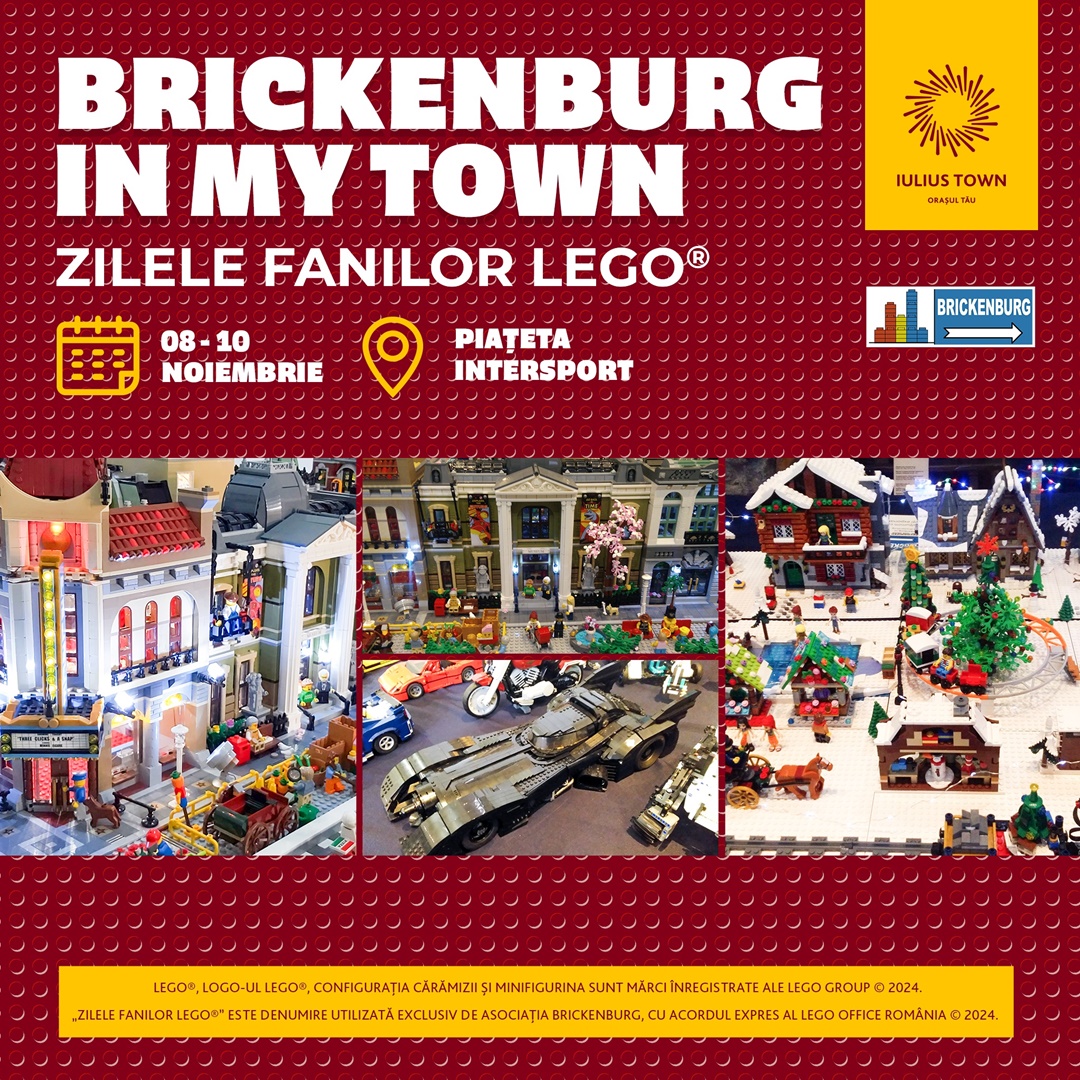 În zona Intersport, în acest final de săptămână, va avea loc o nouă ediție a Brickenburg In My Town – Zilele Fanilor LEGO®. De data aceasta, Asociația Brickenburg vine cu o reprezentare a unui oraș vechi, a unei roți panoramice, a unui carusel și a unor trenulețe. Veți putea admira un târg de Crăciun, cu pomi de iarnă și chiar pe Moșul, dar și o reprezentare a unor scene ce surprind momente din viața cotidiană, un port aflat în construcție și o impresionantă navă de croazieră, toate din piese LEGO®. Mai mult, în cadrul expoziției este prezentată și secțiunea „tehnică”, unde veți putea vedea vehicule funcționale și alte construcții interesante.
