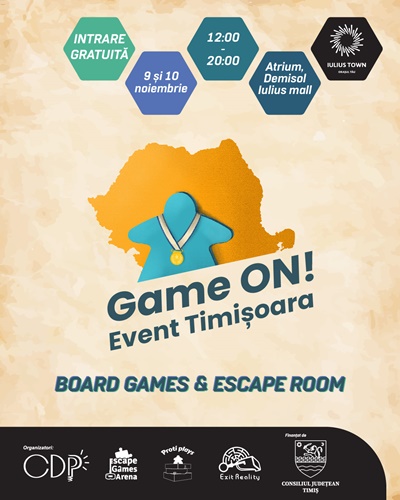 Game ON! Festival vă cheamă la joacă în Iulius Town. Sâmbătă și duminică, 9 – 10 noiembrie 2024, în intervalul orar 12.00 – 20.00, în Atrium, poți să îți demonstrezi abilitățile la board games și escape box. Accesul este gratuit. Cele două zile pline de experiențe fac parte din festivalul dedicat jocurilor de societate Game ON! Festival, care va avea loc, între 15-17 noiembrie, în Timișoara.