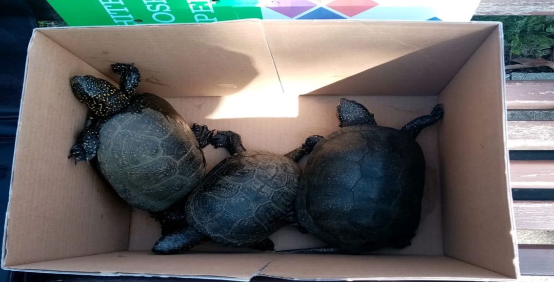 Angajatii Garzii de Mediu Timis au venit in parc si au preluat broastele din specia Emys orbicularis, pe care, mai apoi, le-au eliberat in mlastinile de la Satchinez.