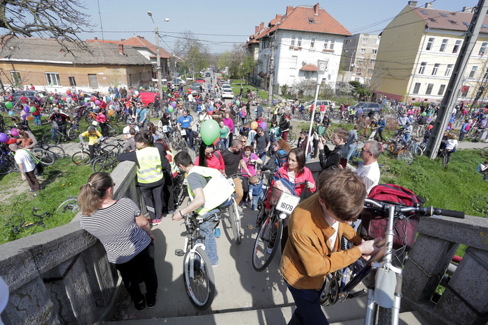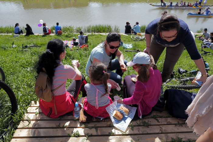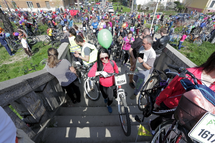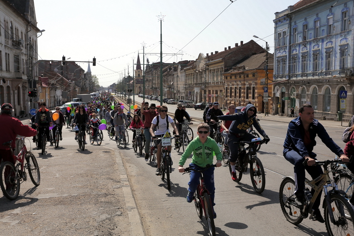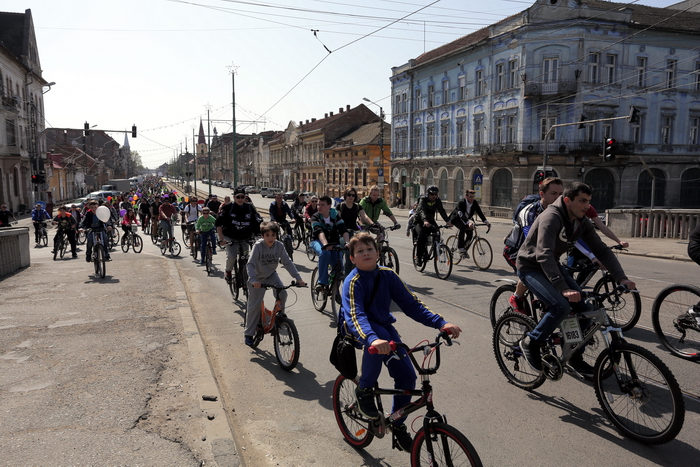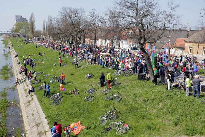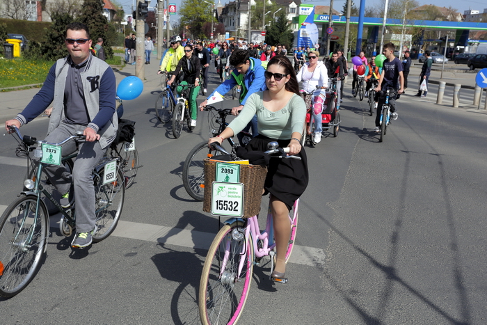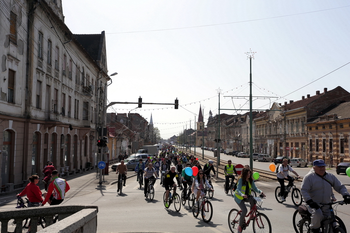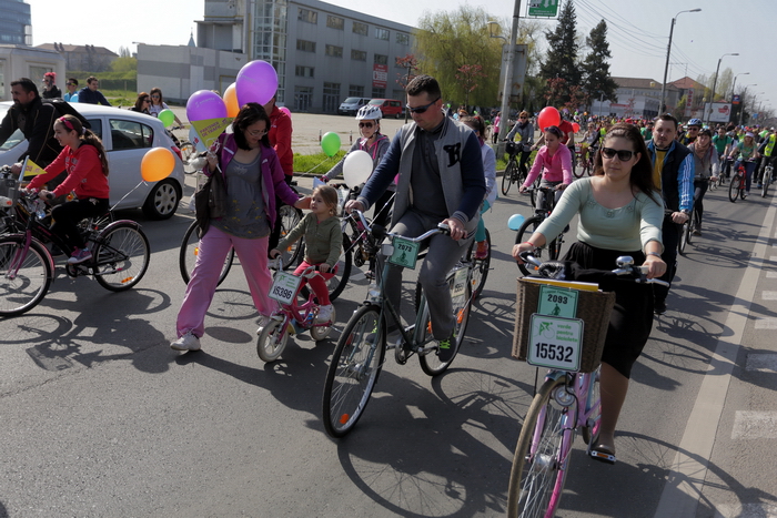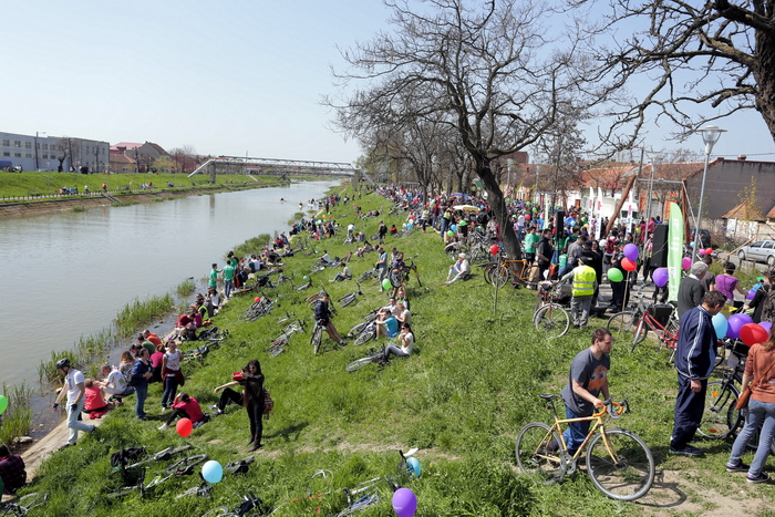 TIMISOARA. Vremea a fost perfecta, iar cheful de plimbare pe masura! Mii de timisoreni si-au scos bicicletele la Pedalarea de Primavara organizata de VpB duminica si s-au simtit pentru cateva ore… parizieni. Asta pentru ca tema acestei editii a fost „Joie de vivre”, tura pe doua roti incheiindu-se cu un picnic la margine de Bega, precum la Paris, pe malul Senei, pentru servirea de delicateturi frantuzesti.