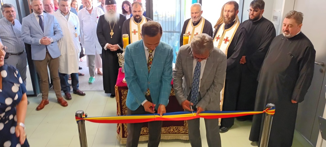 La festivitatea de inaugurare au participat managerul spitalului Dorel Sandesc, managerul de proiect Isabella Petre, presedintele CJ Timis Alin Nica, presedintele ales al Consiliului Judetean Timis Alfred Simonis, prefectul Mihai Ritivoiu, Mitropolitul Banatului si sculptorul Bata Marianov.