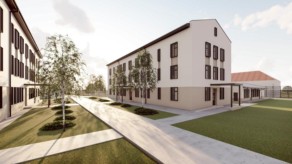 Totodata, va fi construit un pavilion bloc alimentar, care va avea si spatii destinate personalului, precum si cabinet medical, psihologic si sala de lectura cu biblioteca.