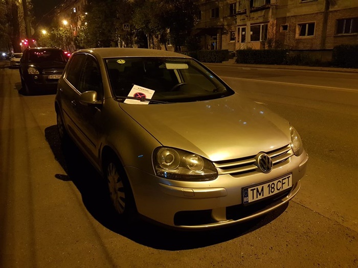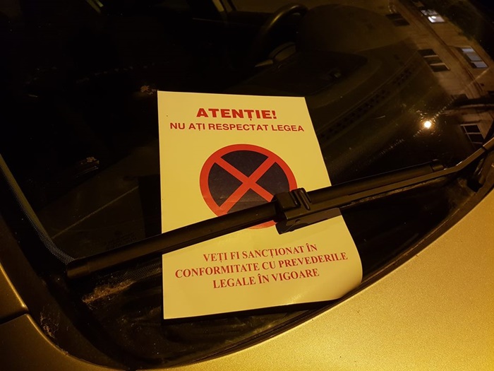 ‘Atentie, nu ati respectat legea! Veti fi sanctionat in conformitate cu prevederile legale in vigoare‘, statea scris pe hartiile gasite in parbriz.