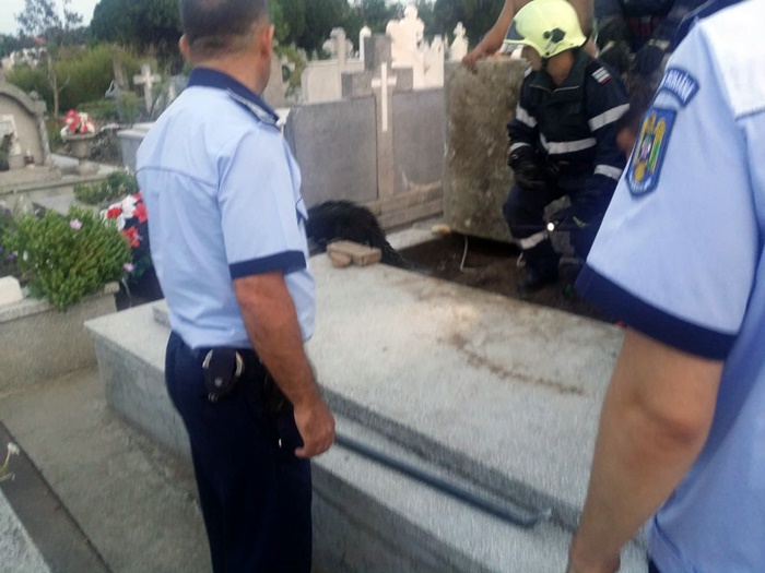 “A trebuit sa ridicam placa de pe mormant, a fost grea, ne-am chinuit un pic pana am ridicat-o si sigur cel care a facut asta nu a fost singur. Au fost mai multe persoane, pentru ca o singura persoana nu are cum sa puna o placa de 400 de kilograme. Chiar m-am uitat, sa verific daca nu era vreo usita sau ceva, nu avea cum sa ajunga acolo cainele. Era inchis ermetic. Am inteles ca de vreo doua zile statea cainele inchis. Sunt mai multi caini care se adapostesc in cimitir, aruncati de oameni. A fost o interventie mai sensibila, cu care nu ne intalnim in fiecare zi“, a explicat pentru opiniatimisoarei.ro Zoran Simici, seful pompierilor din Sannicolau Mare.