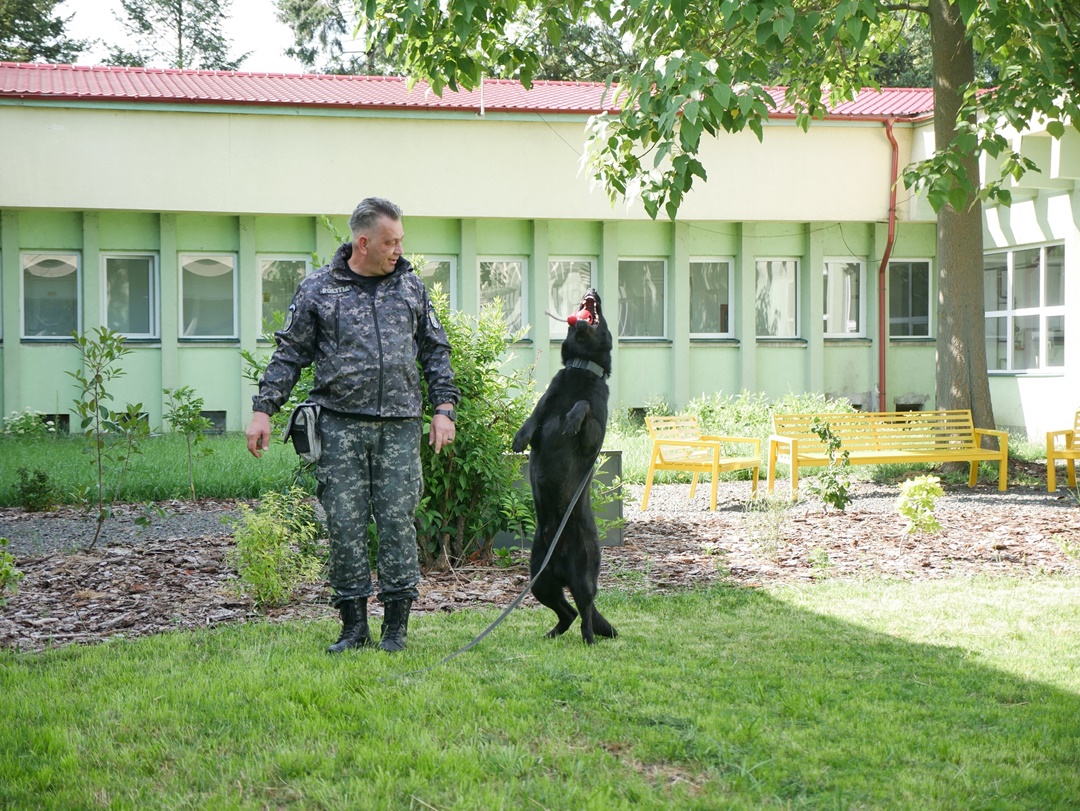 Printre simpaticele patrupede prezentate viitorilor medici s-a aflat si Suier, cainele vedeta al Politiei Romane.
