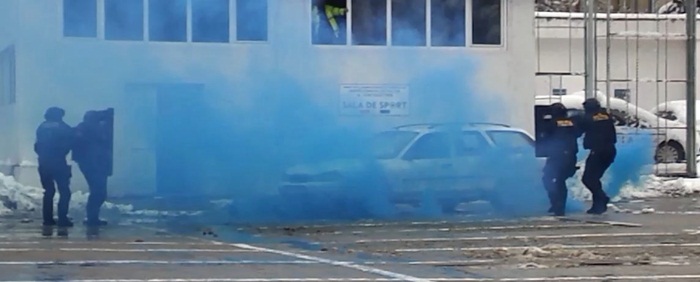 Dupa aceasta a urmat o demonstratie de anihilare a unui grup de infractori cu ajutorul fortelor de interventie, in cadrul careia s-a aruncat cu gaze lacrimogene si s-au tras focuri de arma.